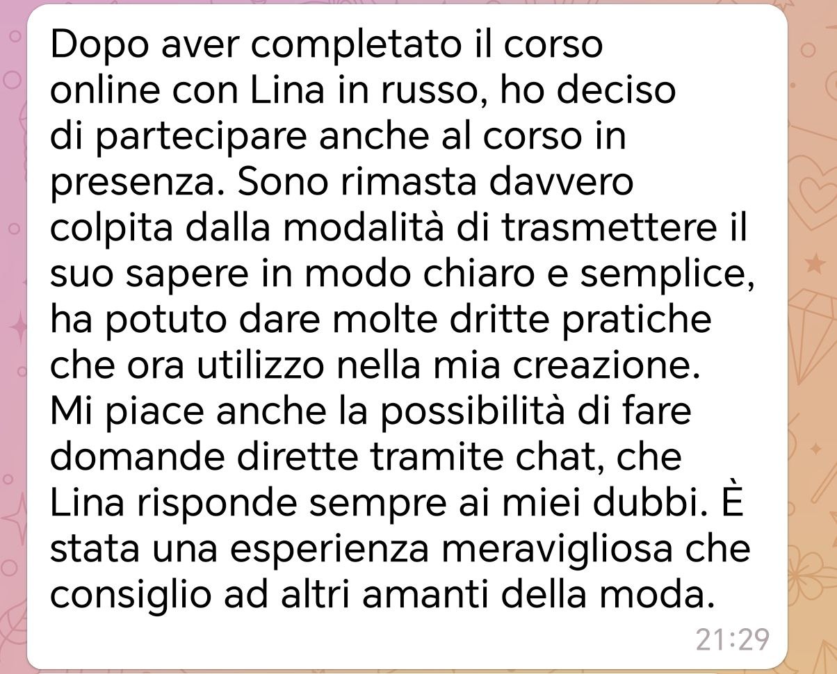 Nel mio corso ti guiderò passo dopo passo attraverso il mondo della modellistica, della costruzione sartoriale e delle tecniche avanzate di cucito. Condividerò con te non solo i metodi più efficaci, ma anche i segreti del mestiere: dalla scelta dei materiali alla gestione dei clienti, fino alla rifinitura dei dettagli più complessi.