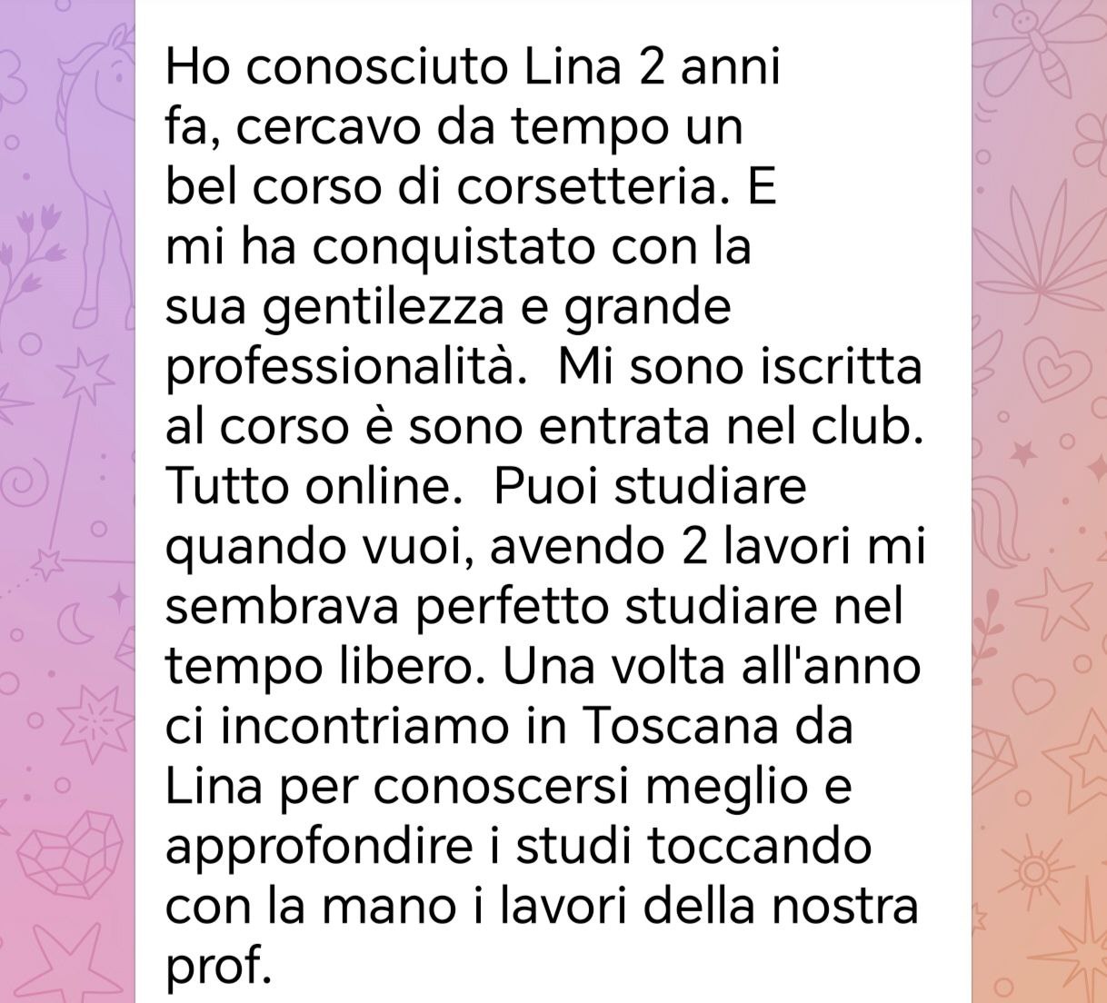 Videolezioni approfondite sulle diverse tecnologie e metodi utilizzati nella realizzazione dei corsetti.