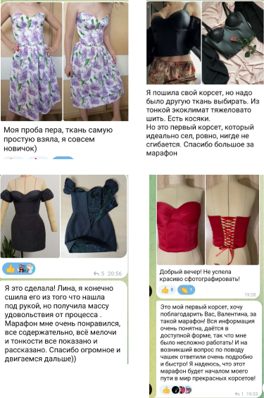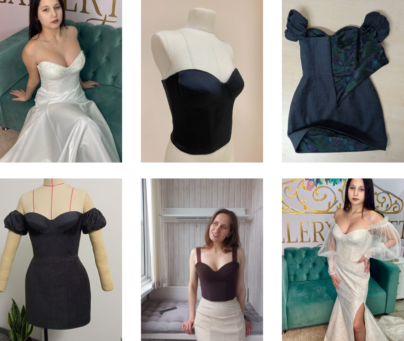 Моя сильная поддержка во время обучения поможет вам избежать ошибок, получить больше информации. Легкое построение , которое можно использовать на будущее, простое моделирование , пошаговый пошив , мои рекомендации и советы приведут вас к желаемому результату. Я открыта и делюсь своим многолетним опытом со своими учениками, с теми кто заинтересован, желает стать профессионалом в пошиве корсетов и свадебных платьев.