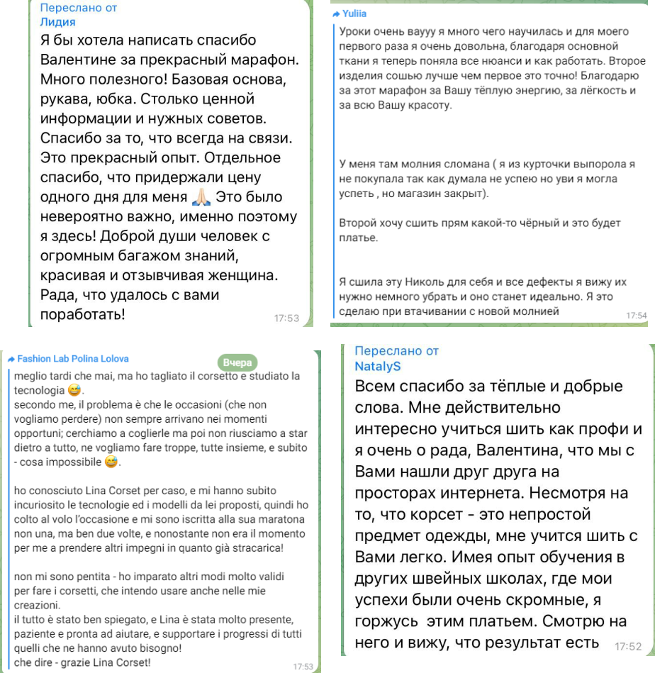 Моя сильная поддержка во время обучения поможет вам избежать ошибок, получить больше информации. Легкое построение , которое можно использовать на будущее, простое моделирование , пошаговый пошив , мои рекомендации и советы приведут вас к желаемому результату. Я открыта и делюсь своим многолетним опытом со своими учениками, с теми кто заинтересован, желает стать профессионалом в пошиве корсетов и свадебных платьев.